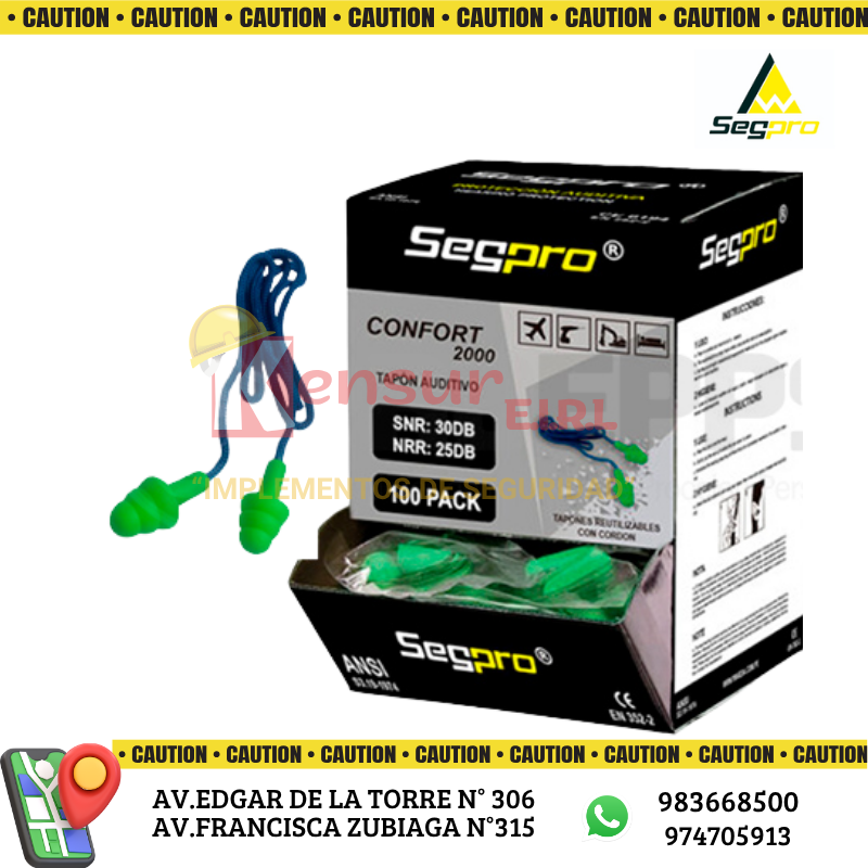 Los tapones auditivos SEGPRO modelo CONFORT2000, son hechos en PVC siliconado reutilizable con cordón, material antialérgico, suave con 3 membranas que sellan el canal auditivo.