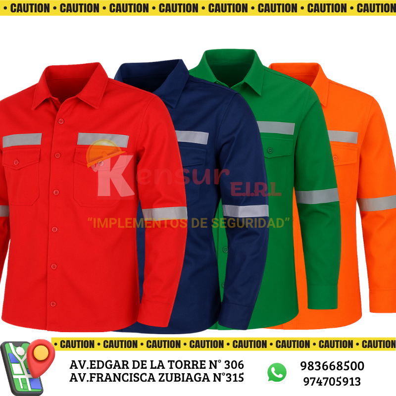 Camisa modelo clásico, hecho de dril tecnológico, con cinta reflectiva, en el pecho, brazos y espalda. Cuenta con 2 bolsillos para el pecho y 4 botones para cierre de la camisa. Corte y botón en cada manga.